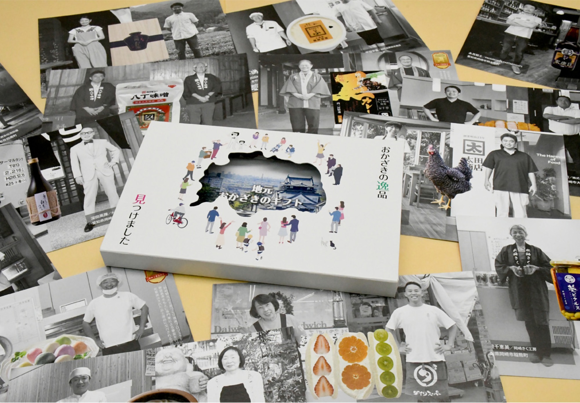 『地元おかざきのギフト』は、岡田印刷が岡崎で培ってきた生産者との信頼関係と印刷業のデザイン技術を活かし、取材、パッケージデザイン、販売を手掛けています。 地域に根ざした企業ならではの気持ちが込められた地域貢献型のカタログギフトです。 『地元おかざきのギフト』は、岡田印刷 おもしろ創造研究室の室長でもある、岡田翔さんがすべて一人で取材を行っています。 その理由を岡田さんにお伺いしました。「『地元おかざきのギフト』の開発において最も大切にしたことは、生産者様に直接お話を聞かせていただくといこと。実際に地元の特産品の生産者様やお店に足を運ぶことで、商品への熱い想いを受け取ることができると思ったからです。」 このカタログギフトには、生産者やお店の方だけでなく、岡田さんの情熱も込められているのですね。 さらに、専用のケースは、岡崎市の形にくり抜かれており、改めて岡崎市の”かたち”を感じることができます。 また、選べる商品ひとつひとつがハガキサイズのカードになっていて、生産者の顔と商品への想いがストーリーとして掲載されているという、今までにないカタログギフトとなっています。 このカタログギフトを生みだした、岡田さんの情熱や創造力はどのようにして育まれたのでしょうか。 岡田さんは、幼い頃から歌を習い、歌が大好きだったそうです。 高校生の時には、コーラス部の部長を務めて、出場した世界合唱コンクールでは見事、世界一となりました。 しかし、その世界一では満足できなかった岡田さんは、コーラス部で全員に向けられる拍手を自分が独り占めしたいと、思ってしまったそうです。 そこで、大学からは合唱よりも少人数のアカペラを始められたそうです。 アカペラを始めるとすぐに頭角を現し、フジテレビ系列番組『ハモネプ』にも出演され、現在も東京を拠点にアカペラグループとして活動し、世界大会でも優勝されました。 歌に対しても尽きることのない情熱で結果を出し続けていらっしゃるのです。 それにもかかわらず、歌で生きていく選択をしなかったのはなぜなのでしょうか。