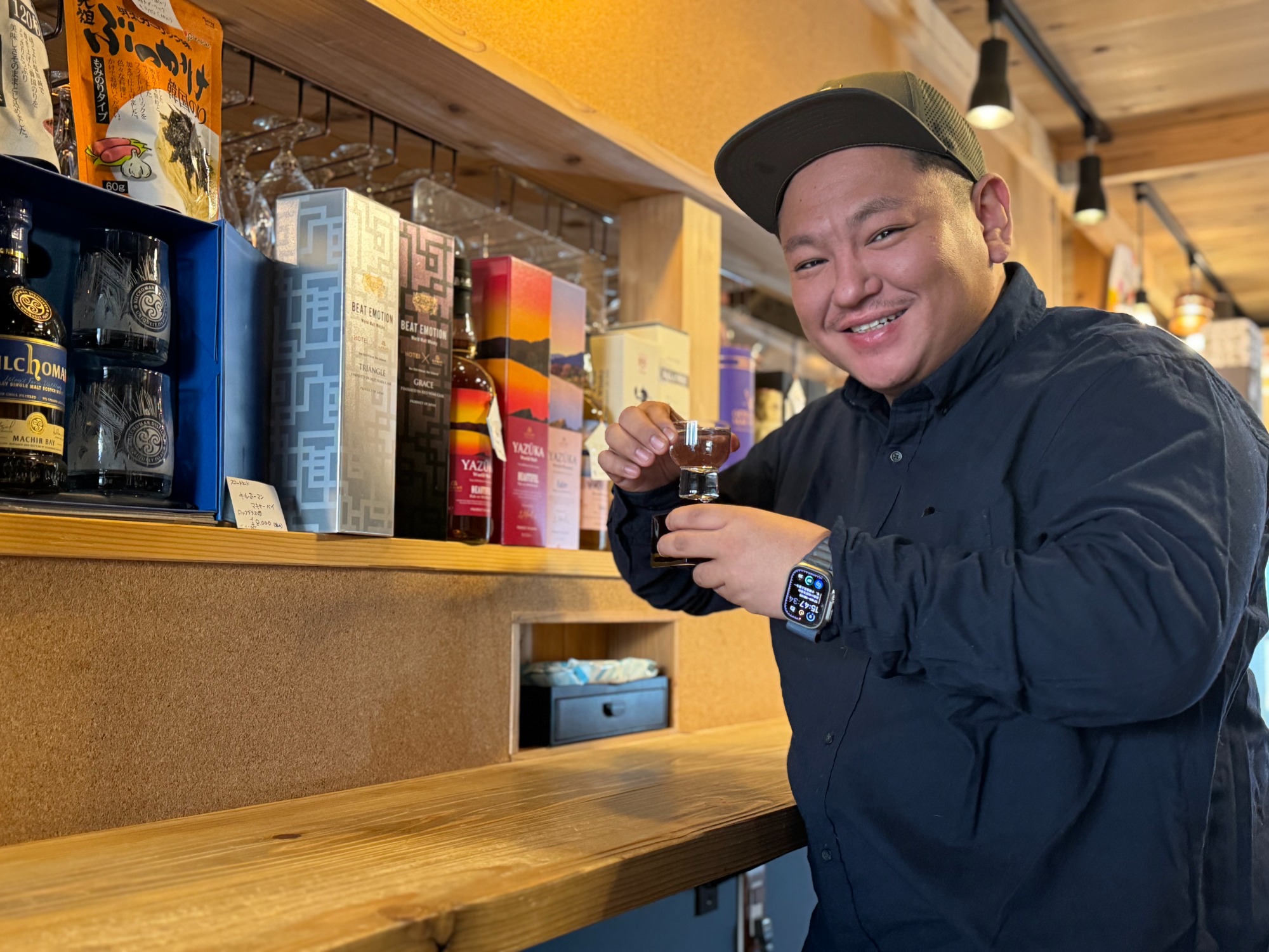 こんにちは。 おかふる公認ライター、おもしろ創造研究室 室長の岡田です。 今回は、岡崎市で100余年続く酒屋さん「株式会社発知商店 角打ちリカーホッチ」さんに取材に行ってきました!「ほっちさん」の愛称で地域から親しまれている発知商店さん。 5代目の稔貴さんは 「お客様の悩みに寄り添ってきたから今まで続けてこれた。大手の酒屋ではできないような、お客様のニーズを叶えるために動いてきたからこそ今があるんです。」 と語ります。 そんな稔貴さんは、酒屋の息子として育ち、大学では食品の成分分析の研究をしていたそうです。 就職活動当初は飲料メーカーの研究職を志望していたそうですが、自分自身の人生を今一度見直し、将来は実家を継ぐことを考え、その糧とすべく、酒類販売に携わることができる業界への就職を決心しました。 就職後は、酒業界の動向を常に研究してきたという稔貴さん。現在売り上げを伸ばしている酒屋がどのような取り組みをしているのか、さまざまな知見を得て、今では発知商店の5代目として、さまざまな取り組みを実施しています。 稔貴「サラリーマン時代に他社の酒屋で『角打ち』を目にし、このようなビジネスモデルがあることを知りました。 もともと発知商店は企業向けの配達が主な業務でしたが、時代の変化に合わせて新たな展開を模索していたところ、対お客さんに直にサービスを提供できる『角打ち』に魅力を感じ、ノウハウがないなかで事業をスタートさせました。 また、お酒は本来嗜好品で、高価な商品に手を伸ばしづらいことに着目し、『角打ち』なら、高価なお酒も少量で、手頃な価格で試すことができ、新しいお気に入りを見つける機会を提供できると思いました。 また、お酒を選ぶ過程でのコミュニケーションを通じて、自分のキャラクターを活かせるという自信もありましたね。 そして、この事業は仕事と家庭の中間に位置する“帰路”に焦点を当てています。 仕事と家庭の間で気持ちの切り替えができる場所として「角打ちリカーホッチ」を位置付けてもらえれば嬉しいです。」